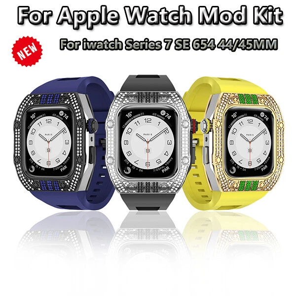 Luxury Diamonds Metal Case Rubber Band Mod Kit For Apple Watch Se 7 6 54 44 45mm Ebay